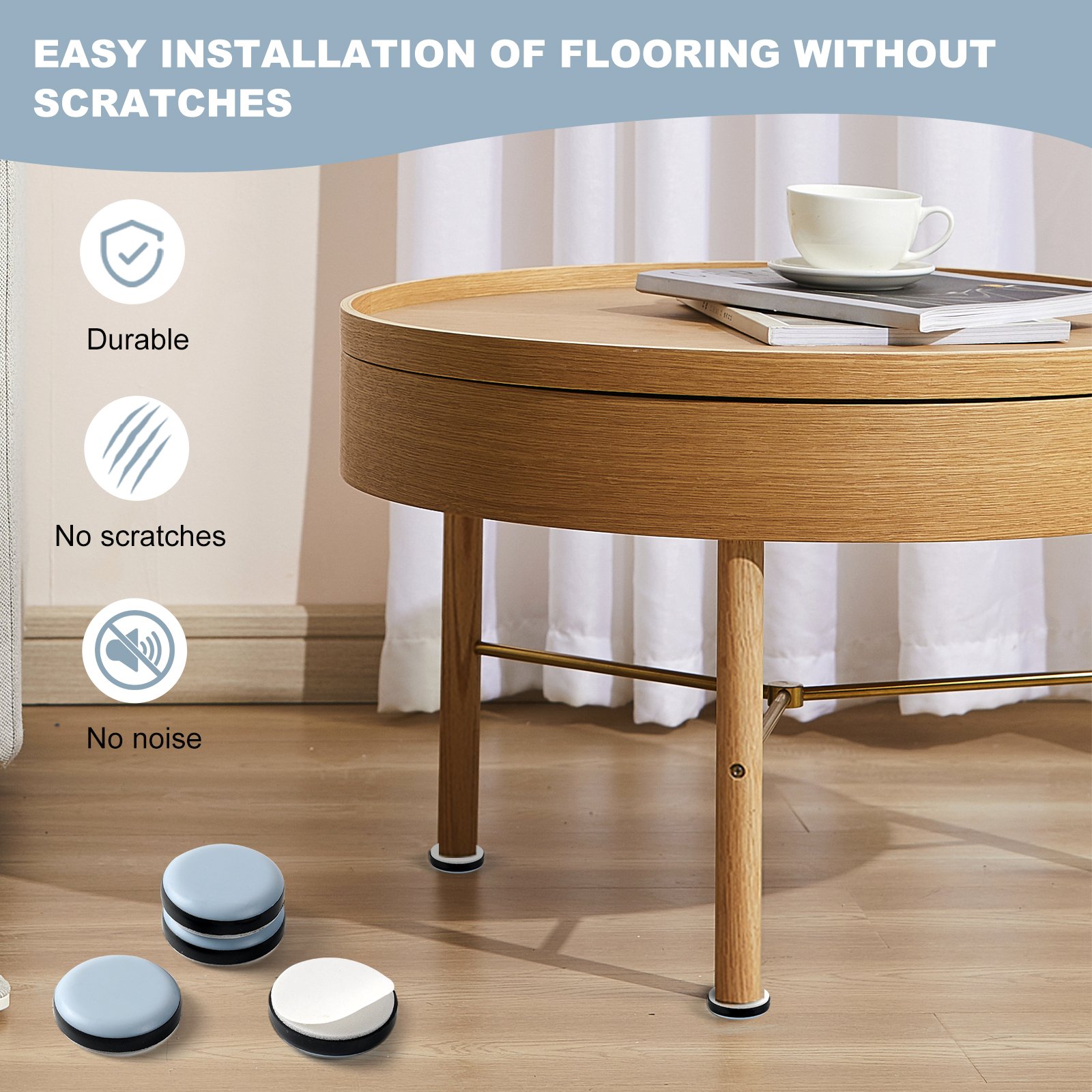 • PTFE Base: Provides exceptional low-friction movement, ideal for protecting floors and ensuring easy furniture mobility.